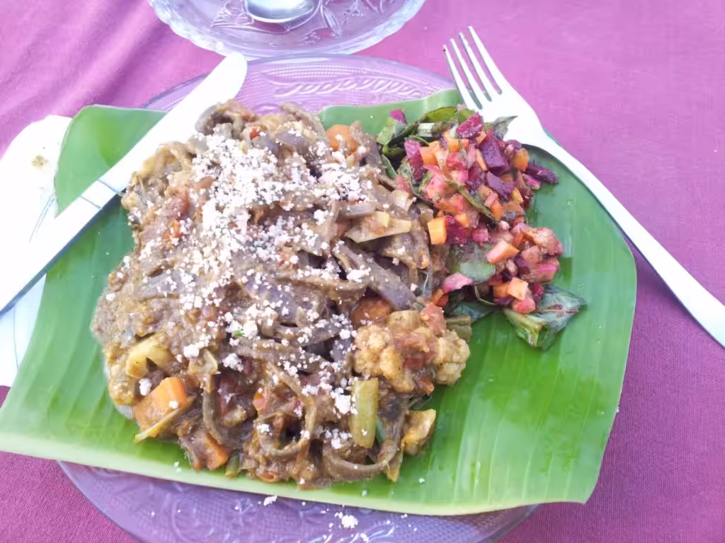 Mittagessen und Abendessen musste man sich selber versorgen. Da es nur entfernt, frische Läden zum Einkaufen gab und Bio selten ist (ohne Saison), bin ich zum Bio Restaurant gegangen, leider gab es auch dort nicht so viel frische Obst und Gemüse, (aber die Veganen Schokokuchen waren genial).