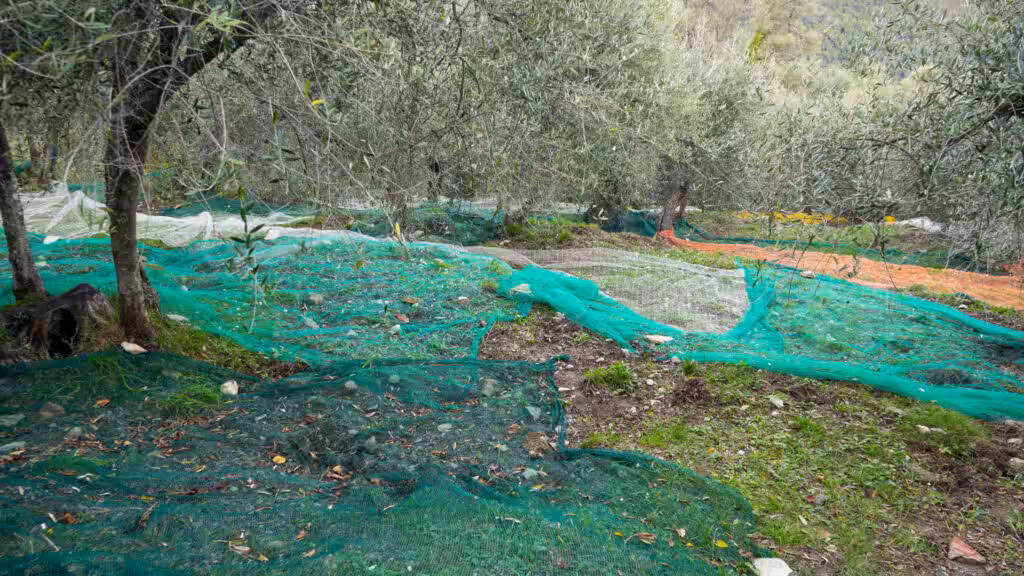 Hier haben sie viele Olivenbäume. Leider war es nicht so gutes Wetter in 2019, somit ließen sie die Ernte ausfallen. Wir haben dann Vorbereitungen für das nächste Jahr (also dieses) gemacht. Die haben oben die Mitte-äste gestutzt und ich habe die stacheligen Brombeeren aus dem Weg entfernt. Der Nachbar hat versucht zu Ernten wie man an den Netzen sieht.