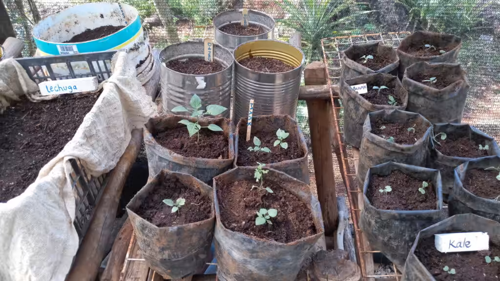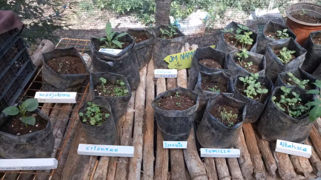 In der Nuserie, Pflanzenschule, werden die Pflanzen gesät. Über die Samenbank hab ich ein extra Video. Durch den Sonnenschutz und die feine Erde wachsen sie besser. Sind sie groß genug, kommt die Pflanze in Garten. Die werden auch tägl. Gegossen, mit einem speziellen Spray, wie man es bei uns mit den Orchideen macht.